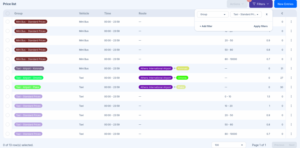 Set zones, vehicle types, custom routes, or combine them to work all together. You can set discounts to all prices or some of them.
